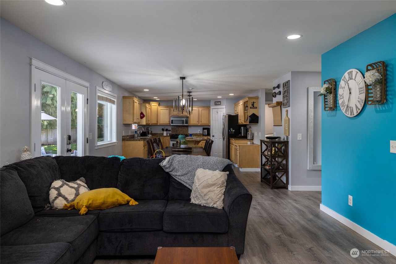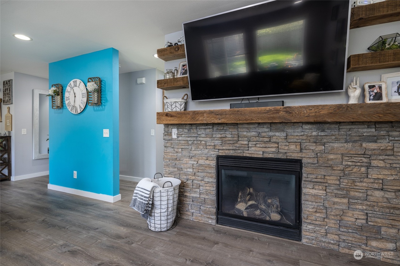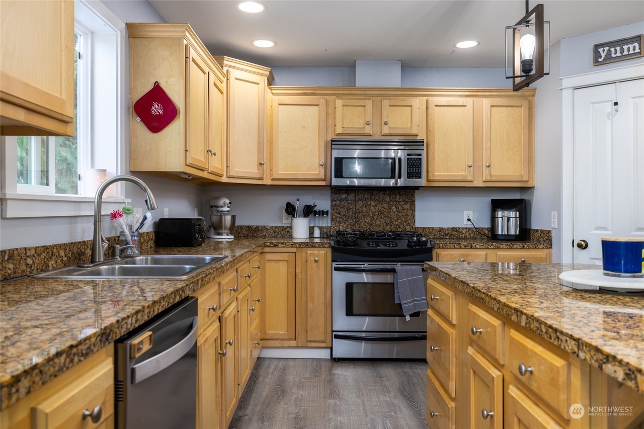 This 3+ bedroom, 3-bath home with 1889 sq ft sits on two spacious corner lots at the end of a cul-de-sac, offering a mountain view. The kitchen boasts granite-tiled countertops, stainless steel appliances, and a pantry. The living room features a propane fireplace with stack stone surround. A bonus room on the main level serves as an ideal office/den. Upstairs, find well-appointed bedrooms, including a primary bedroom with an en suite. The home includes a 3-car garage with epoxy floors, tankless hot water heater, and a fully fenced backyard with a concrete patio. Enjoy Glenhaven amenities like a seasonal pool, clubhouse, and two lakes.
