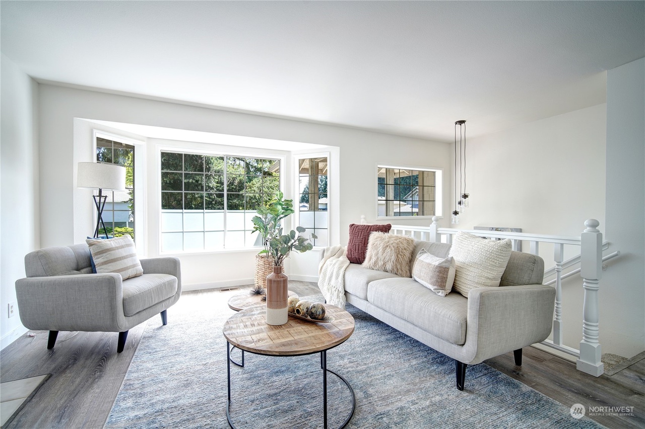 Revitalize your space with our premium flooring in this 4-bed, 3-bath Mid-Entry home. Modernize with updated flooring, enhancing the charm of the living room's bayed window, the kitchen's bright eating nook, and the primary bedroom's luxurious 5-piece bath. Elevate your home with style and simplicity.